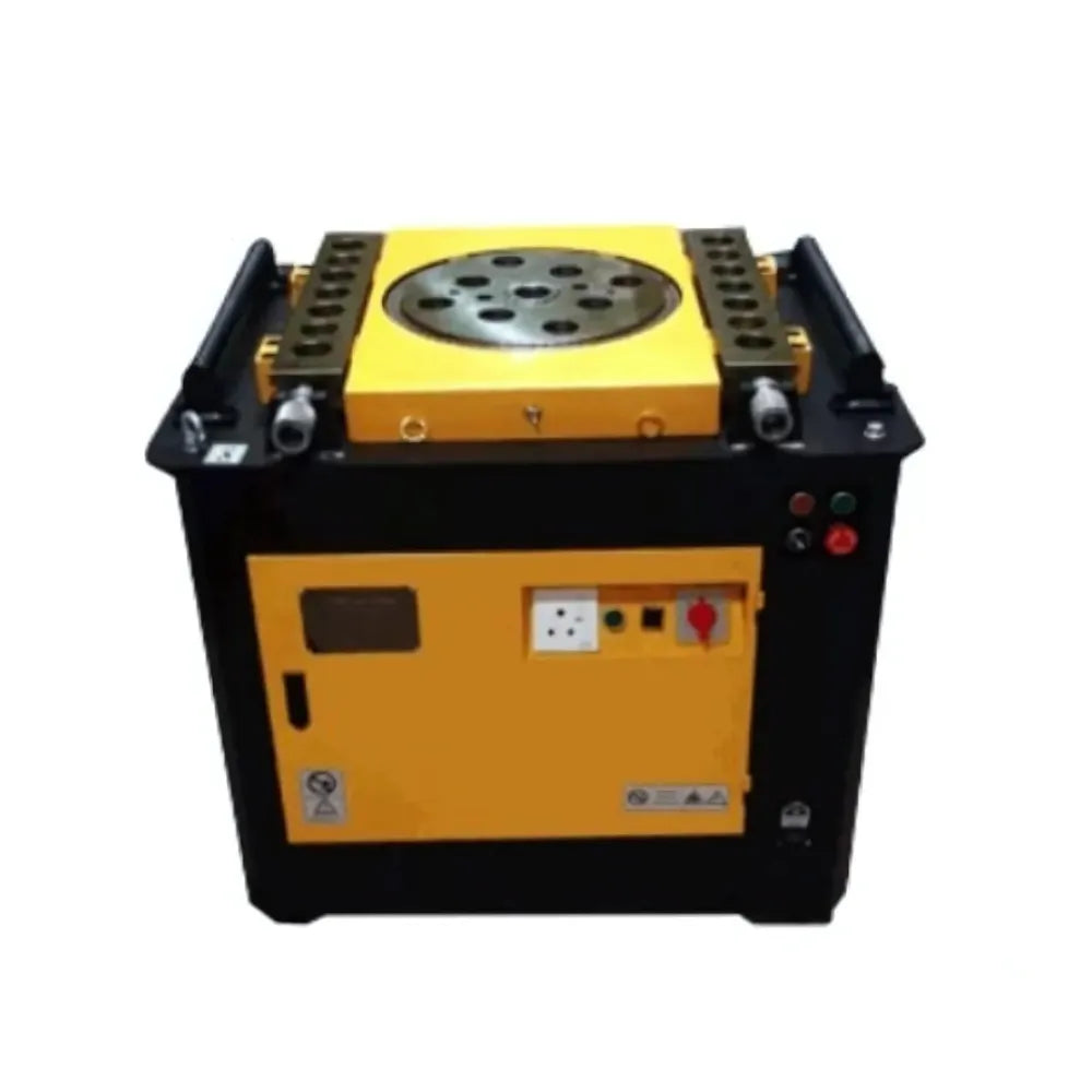 The Rebar Bending Machine - GW52J is a high-performance machine designed to bend rebar efficiently for construction projects. With a bending capacity of 6mm to 40mm, it ensures precise bending for various reinforcement needs. The machine operates at a bending speed of 20 r/min, enabling fast and consistent performance for large-scale operations. Powered by a 4kW brake motor, it delivers reliable strength to handle heavy-duty bending tasks. The robust 405mm plate diameter and 10mm table thickness provide excellent stability and durability, ensuring long-lasting use in demanding environments. With a compact design (1000780880mm) and a weight of 395kg, it is well-suited for tight spaces on construction sites, offering flexibility and reliability without compromising on power or performance